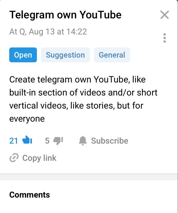 В Telegram предложили встроить «собственный YouTube» — обращение