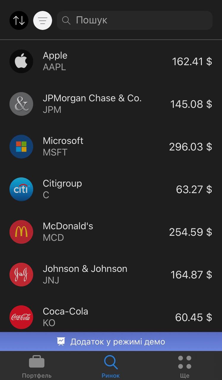 Зараз це тільки beta (купувати акції зараз неможливо) і тільки власники яблучної техніки можуть скачати додаток, але вже скоро можливість купувати акції буде відкрита.