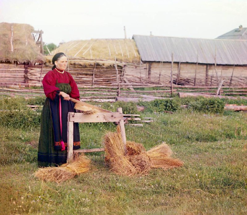 Фото Прокудина-Горского. Крестьянка мнет лен.