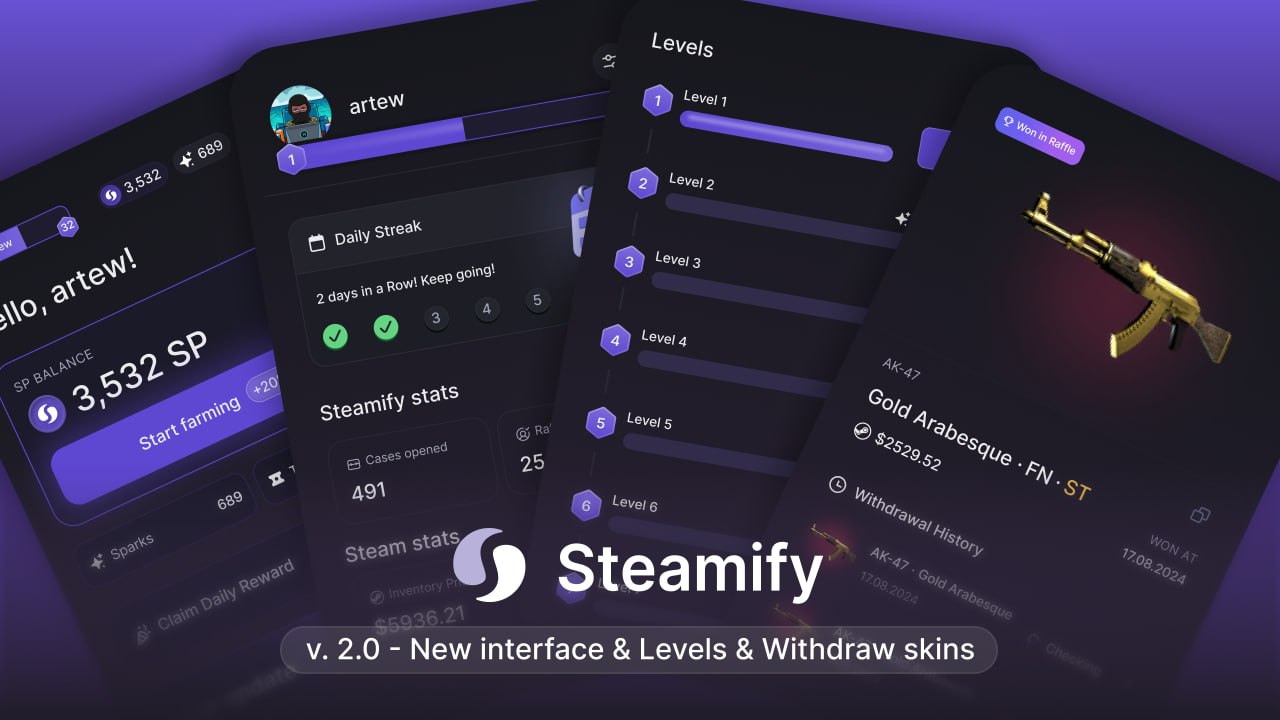 Today we celebrate two months since the launch of Steamify! We've come a long way in this time: it all started with our first steps, when we added farming, first games, inventory, referral system and much more.