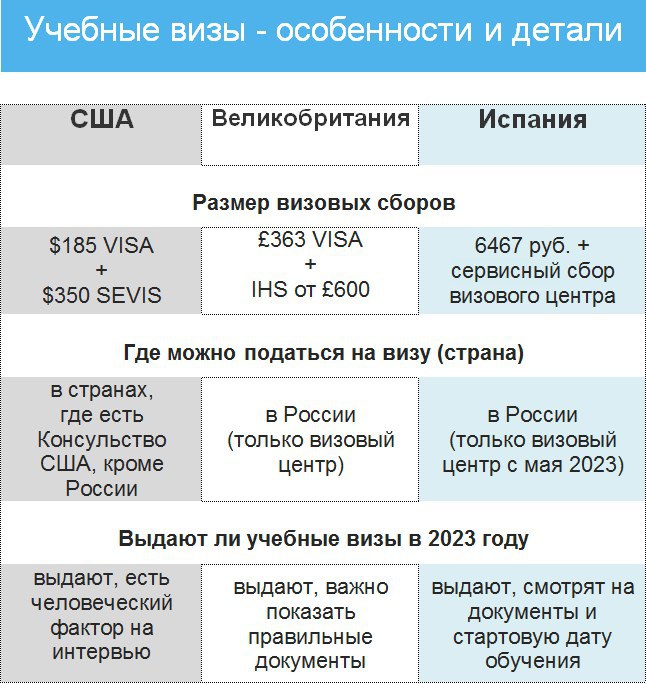 Какую учебную визу получить проще: в Великобританию, США или Испанию в 2023 году?