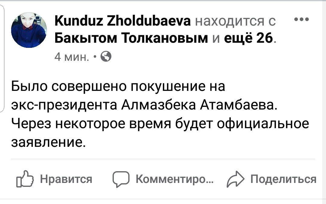 Атамбаев показался на публике, он не пострадал. Подтверждает, что речь шла о покушении, огонь велся боевыми патронами.