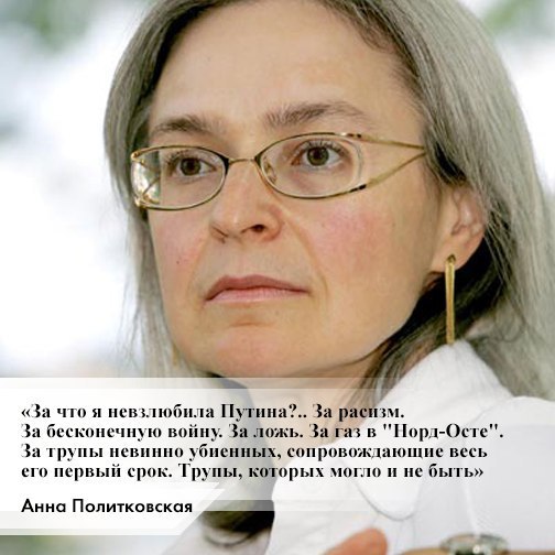 После убийства Анны Политковской вышел сборник ее статей под названием "За что". Думаю, что нам всем ясно, за что убита Анна Политковская.