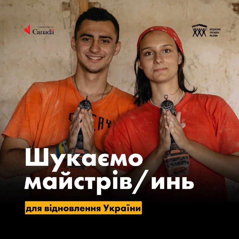 🔎 Шукаємо майстрів/инь для відновлення України! ГО "Будуємо Україну Разом" шукає спеціалістів, які готові стати співтворцями будівничих таборів.