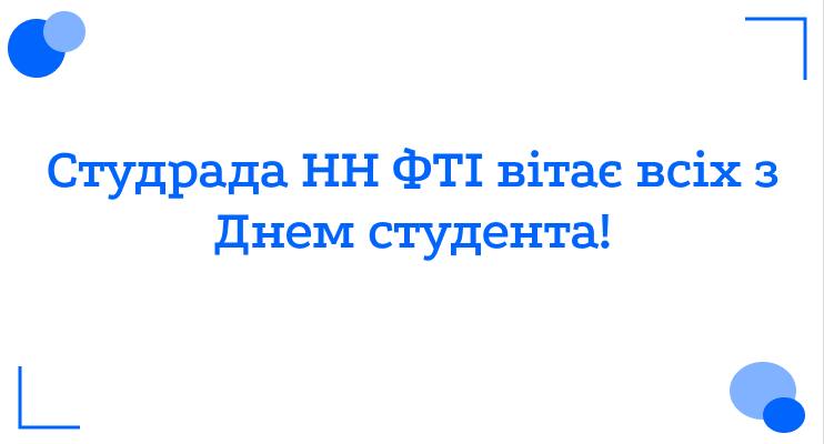 Студрада щиро вітає всіх ФТІшників та ФТІшниць із Днем студента. Нехай навчання дається легко, іспити складаються швидко, а вільного часу буде все більше 🫶