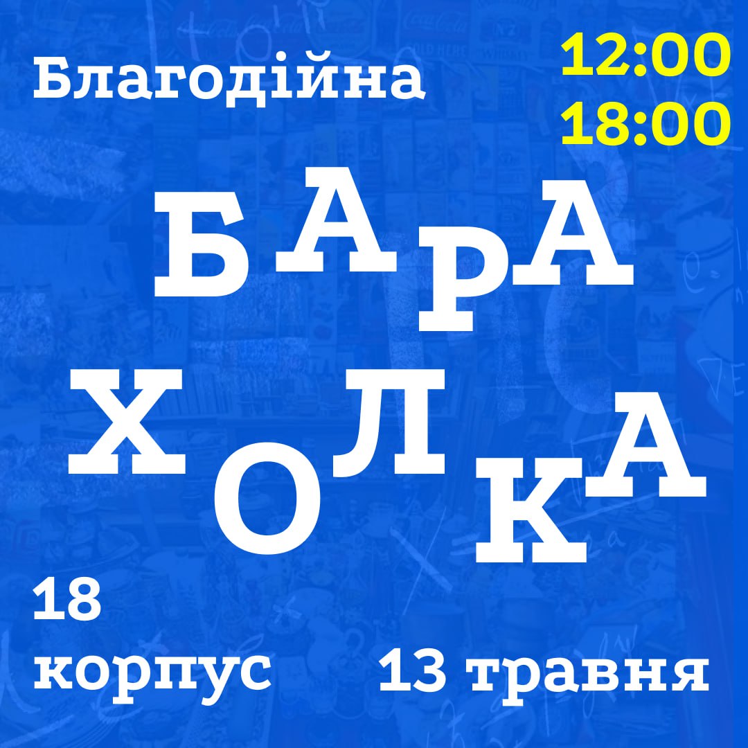 13 травня, з 12:00 до 18:00 біля 18 корпусу КПІ відбудеться барахолка! Приходь аби придбати приємні дрібниці, взяти участь y різноманітних майстер-класах і послухати живу музику.