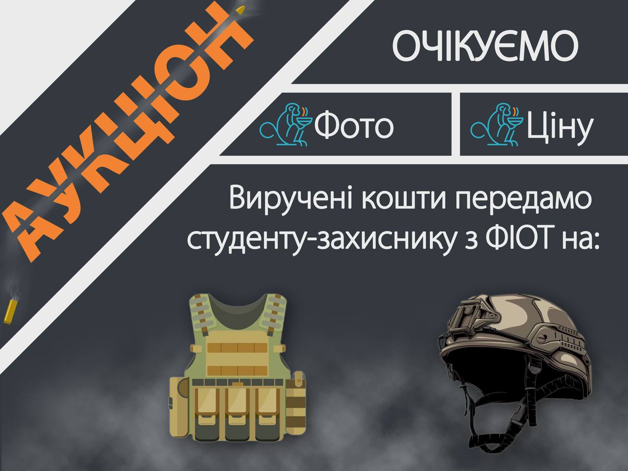 Усі гроші виручені з продажу будуть відправлені на захисне обладнання для студента КПІ. Чекаємо на вашу активну участь!