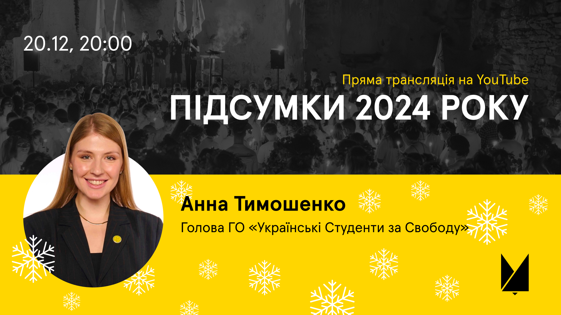 2024 рік минає, тож настав час підбивати підсумки! 20 грудня о 20:00, Анна Тимошенко, Голова ГО «Українські Студенти за Свободу» проводитиме підсумковий прямий ефір на YouTube, де розповість про нашу діяльність за 2024 рік!