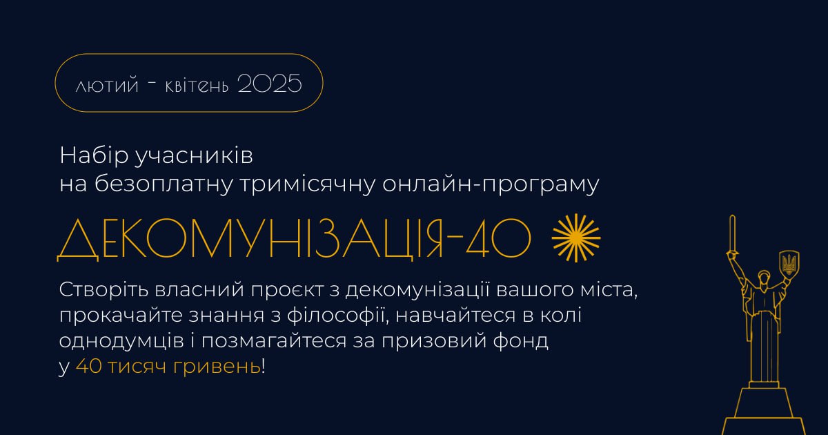 🔥 Радимо зареєструватися на безоплатну онлайн-програму «Декомунізація-40»
