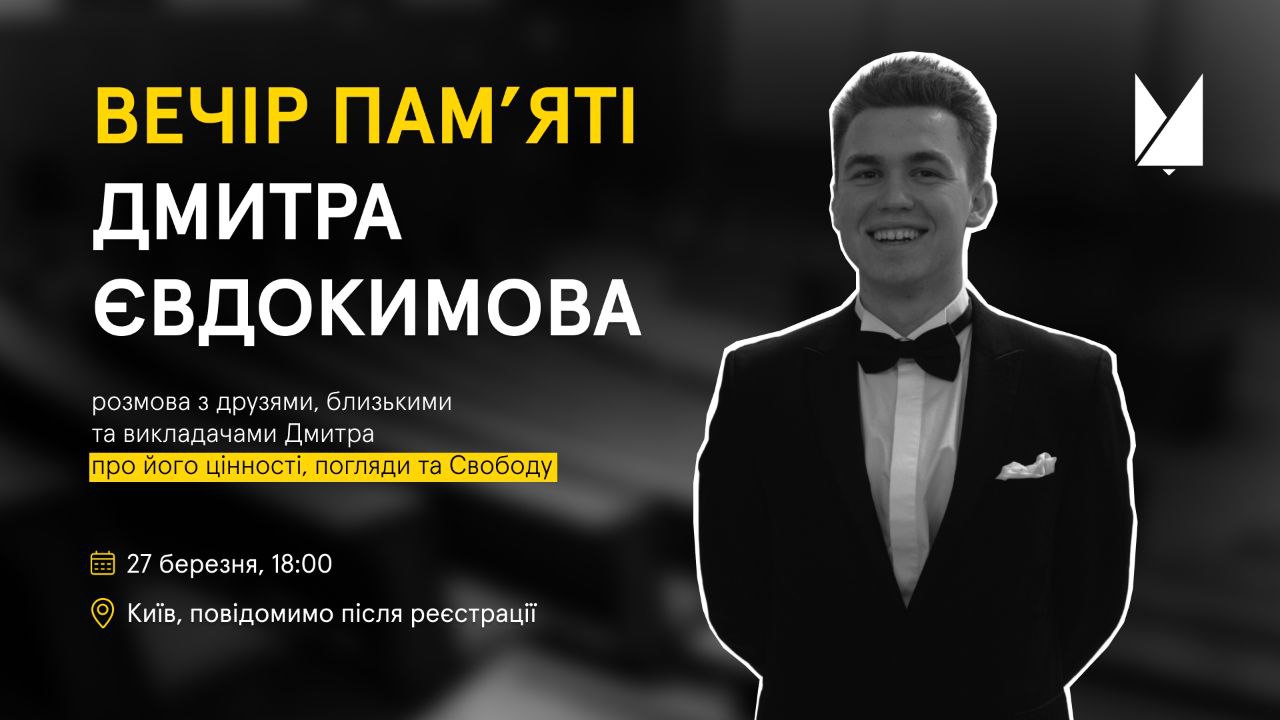 29 березня 2022 року Дмитро загинув під час виконання завдань на Харківщині, він був людиною з надзвичайно сильним бажанням досліджувати цей світ і покращувати Україну. Тому на Вечорі про його цінності, погляди, відданість будуть говорити знайомі Дмитра.