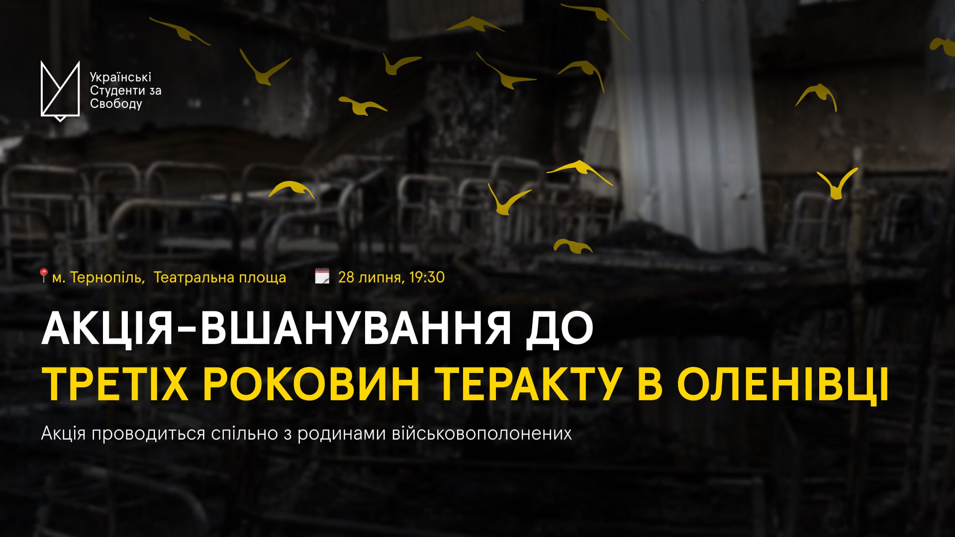 🕯 У Тернополі відбудеться акція-вшанування пам’яті загиблих під час теракту в Оленівці