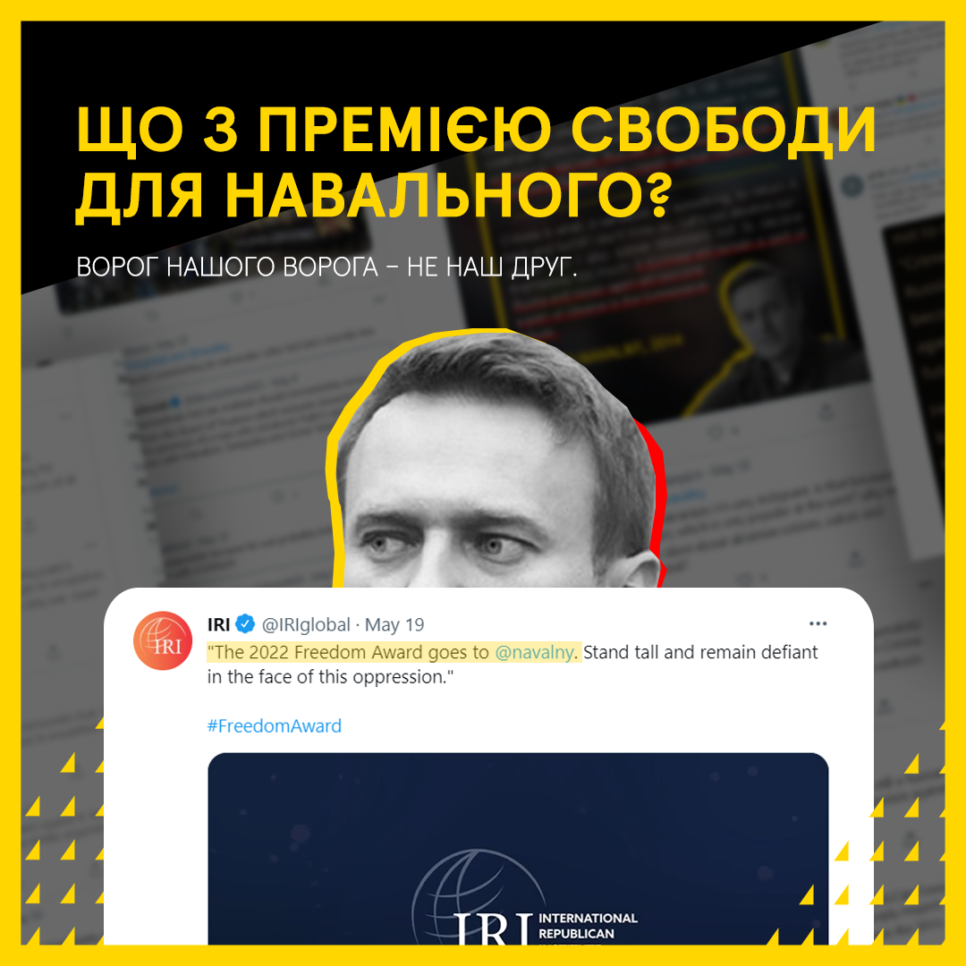 Минулого тижня ми розповідали вам про Міжнародний Республіканський Інститут, який вирішив вручити Премію Свободи українському народові і водночас російському імперіалісту Навальному.