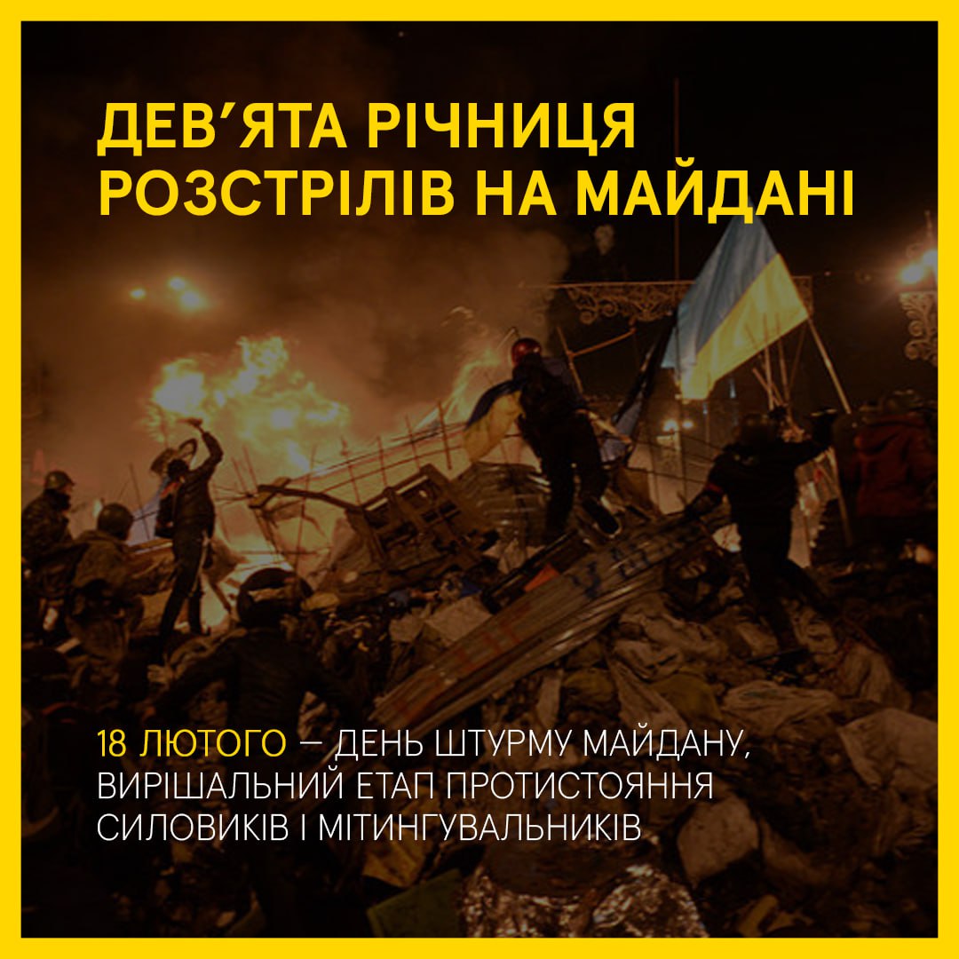 🗓 Сьогодні ми віддаємо шану тим, хто брали участь у протестах дев'ять років тому на Майдані Незалежності і мужньо чинили супротив силовикам. 18 лютого 2014 року розпочались найтрагічніші дні Революції Гідності, яка, у свою чергу, стала великою та важливою…