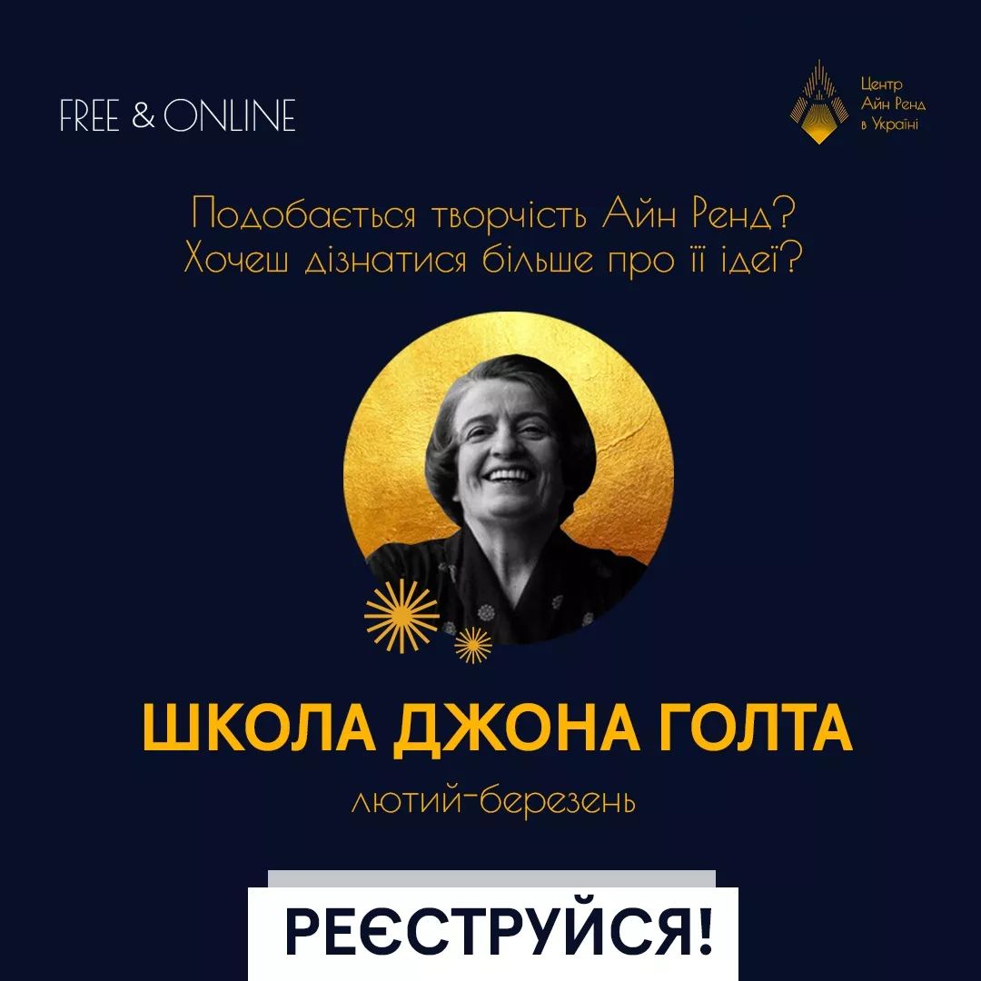 Уже через два тижні розпочинається навчання в онлайн Школі Джона Голта. Нагадуємо, що цей проєкт є безкоштовним і має на меті глибше познайомити усіх охочих з ідеями американської письменниці Айн Ренд.