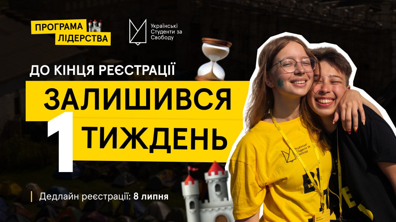 1️⃣ тиждень до кінця реєстрації на Програму Лідерства 2025 від Українських Студентів за Свободу!
