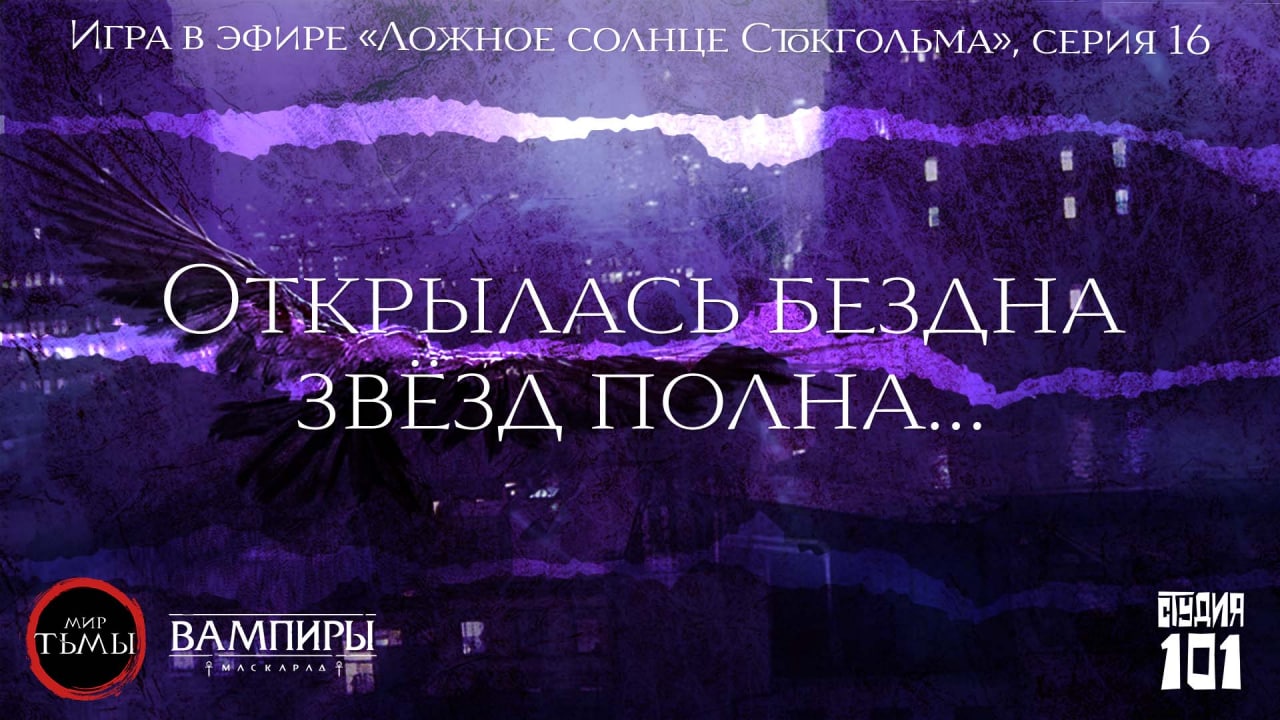 В эту среду, в 19:00 по московскому времени, мы продолжим нашу кампанию «Ложное солнце Стокгольма» по правилам настольной ролевой игры «Вампиры: Маскарад. Пятая редакция».