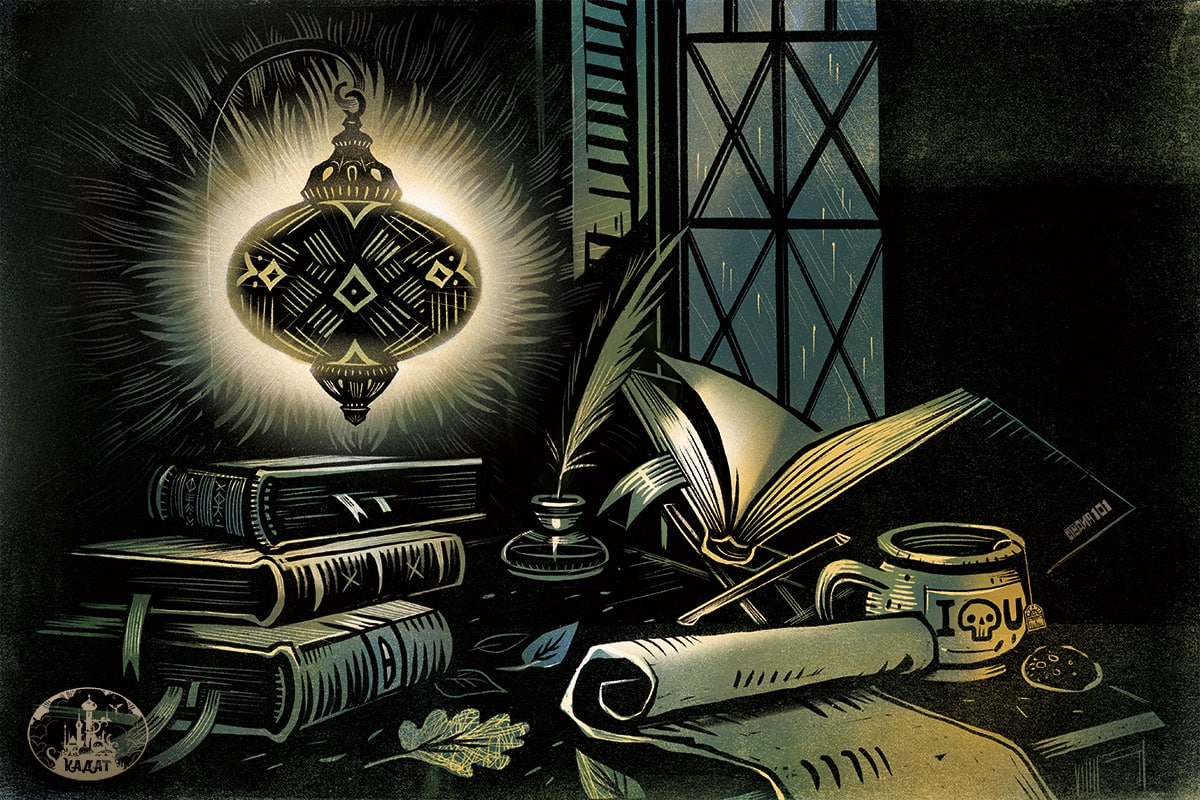 //Иллюстрация: комната аль-Хазреда, шмунцтитул к главе «Земли Осени» игры «По ту сторону врат»