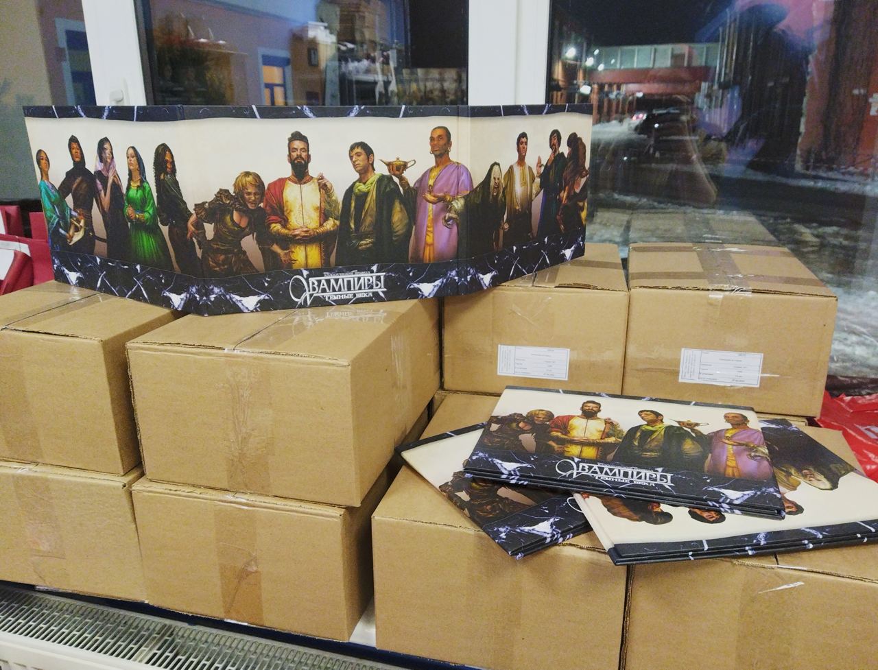 2. На наш склад приехали из типографии ширмы ведущего для настольной ролевой игры «Вампиры: Тёмные века. Классические правила».
