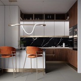 Акцентным дополнением выступают необычно отфрезерованные фасады, покрытые жидким металлом напоминающие чугун и декоративные реечные панели.