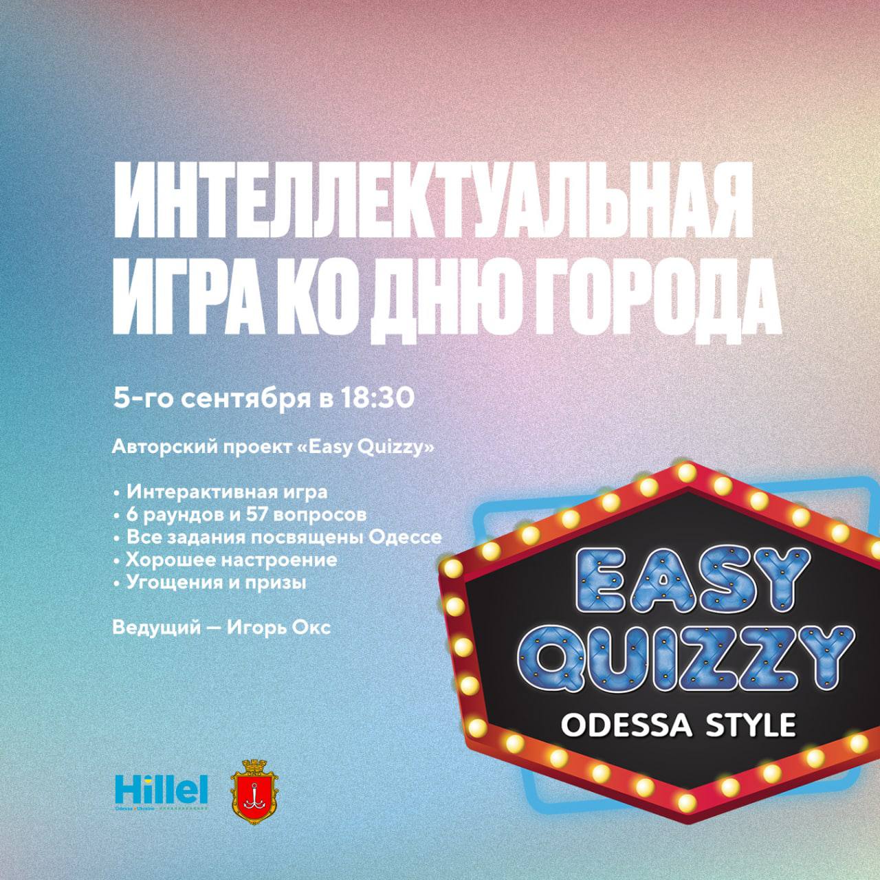 Авторский проект «Easy Quizzy» — стильный и драйвовый квиз от Игоря Окса и Арсена Малиновского, посвященный дню города Одесса.