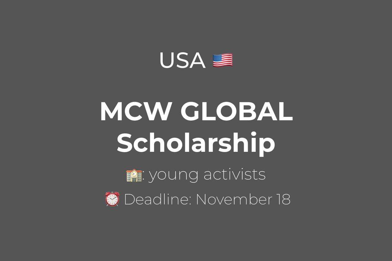 The MCW GLOBAL Scholarship Program is designed for young activists who want to become world leaders and contribute to the development of the global community. The organizers cover all expenses: from flights to meals.