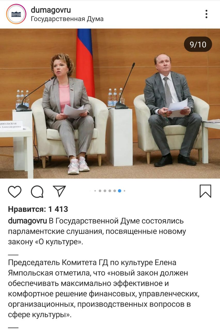 На парламентские слушания, посвященные новому закону "О культуре", председатель комитета ГД по культуре Елена Ямпольская надела кроссы. Не факт, что в остальные дни тоже, но вот в этот кроссы были👇