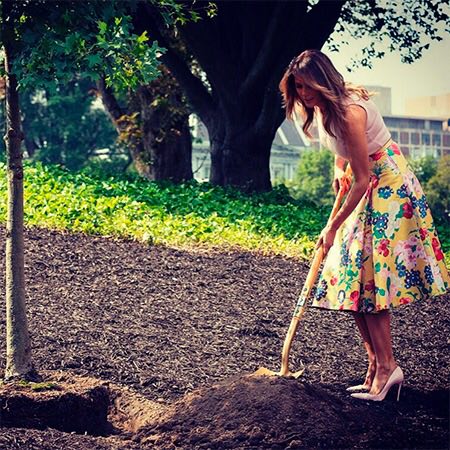 И когда будете идти в них по лужам и грязи, вспоминайте, что где-то там в "этой вашей Омерике" живет Мелания, которая копает грядки на каблах 👇 Реально легче становится, что самая несвоевременная обувь не у вас))