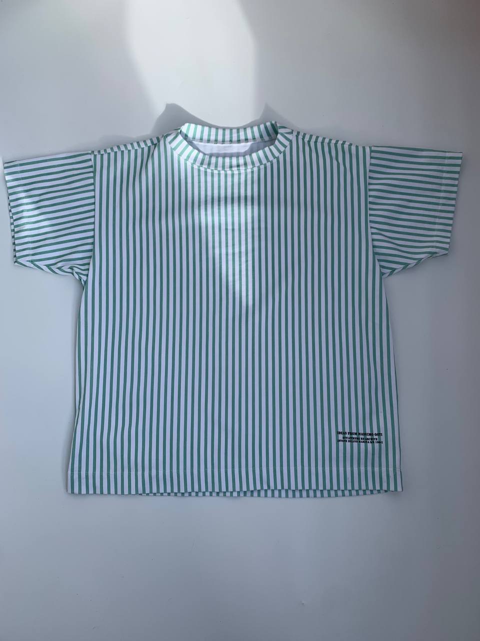 Все детали футболки воссозданы с точностью: оттенок, ширина полосок и расстояние между ними – из коллекции ss 1984, лекала – от футболки Stone Island ss 1989.