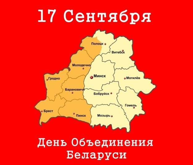 17 сентября состоялось воссоединение Беларуси. Нам еще предстоит осознать значимость событий этого дня в своей истории. Я убежден, что эта дата должна стать красным днем календаря. С Праздником !!!