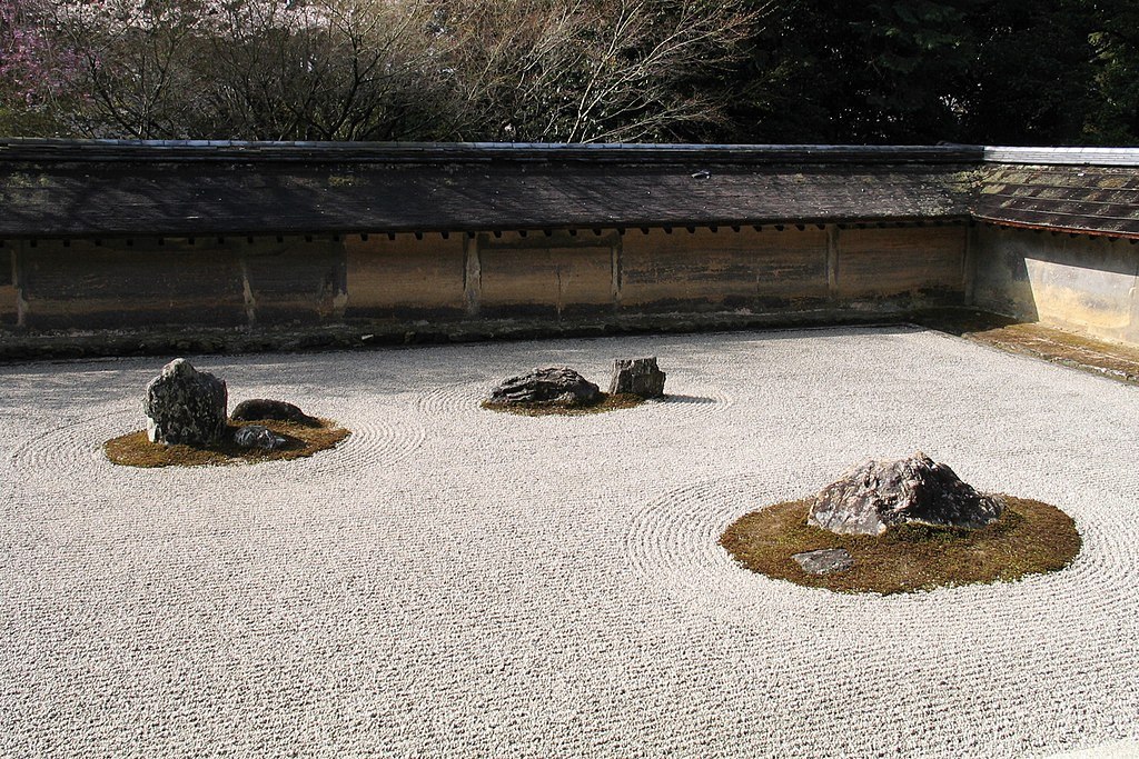Самый яркий пример, имеющий мировую известность, это сад камней монастыря Рёндзи в Киото (Япония), выполненный в начале 16 века. Он представляет собой сравнительно небольшую по размерам площадку (всего 336 кв.м.) - плоскую, прямоугольной формы, засыпанную белым гравием с расставленными в группы пятнадцатью камнями. Сад, выполненный в манере нарочито абстрактного сухого ландшафта - карэ-сансуй, состоит из пятнадцати скальных обломков, разложенных так, что посетители могут одновременно видеть лишь четырнадцать из них, под каким бы углом они ни смотрели.