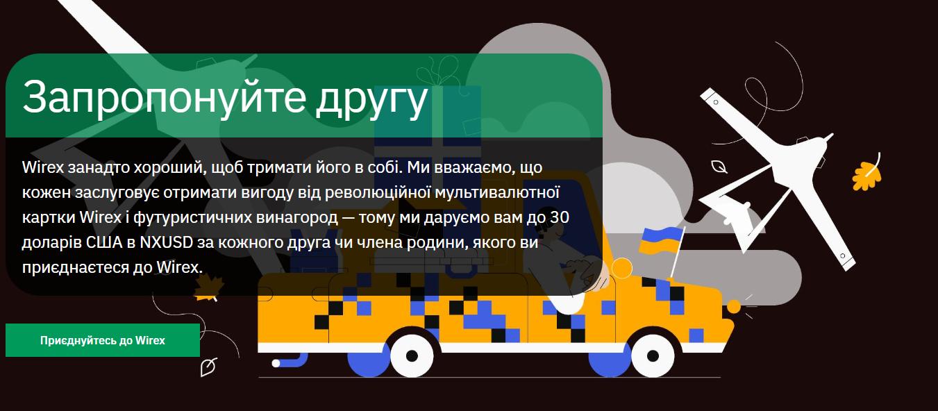 ❗️Увага! Умови реферальної програми викладено станом на 12 жовтня 19:00 за Києвом. Будь ласка, слідкуйте за оновленням умов на офіційному сайті «Wirex» ↗️.