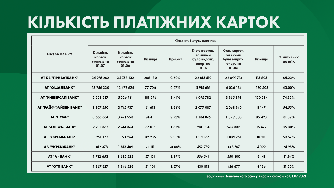 🥇Лідерами за приростом активних карток:
