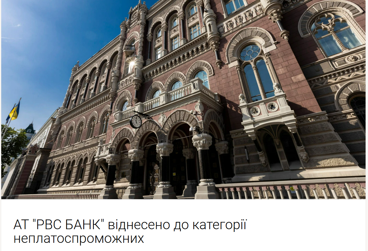 ⚡️ -1 банк: Національний банк України відніс ↗️ «RwS Bank» до категорії неплатоспроможних