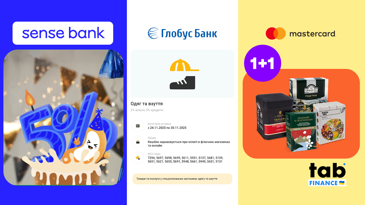 • «Sense Bank» святкує п'ятиріччя «Sense SuperApp» і дарує 5% кешбеку за кожну п'яту операцію. Акційний кешбек нараховується з 24 по 28 листопада тільки за операції, МСС-коди яких беруть участь в «Cash'U Club». Чотири операції, що передують п'ятій, також повинні мати МСС-код, що бере участь в програмі лояльності. Максимальна кількість бонусів, яку може отримати один клієнт за весь період акції, — 100. Офіційні правила акції доступні на сайті Банку ↗️.
