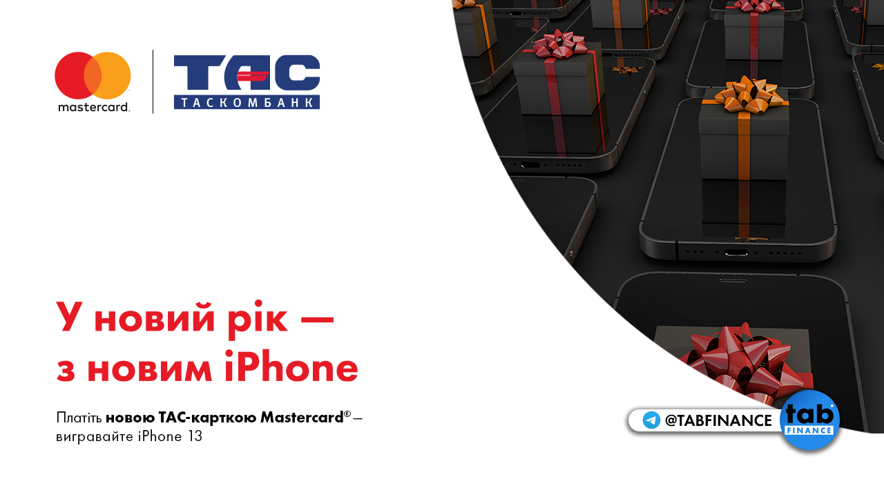 🎁 Вигравайте «iPhone 13» за розрахунки новими картками «ТАСКОМБАНКУ»