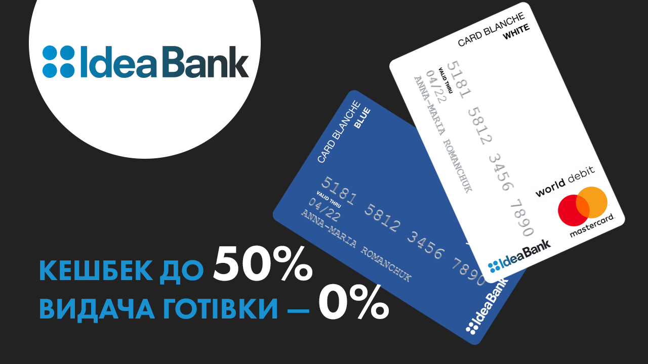 🔥 Кэшбэк до 50% и беспроцентное снятие наличных в банкоматах для карт «Idea Bank»