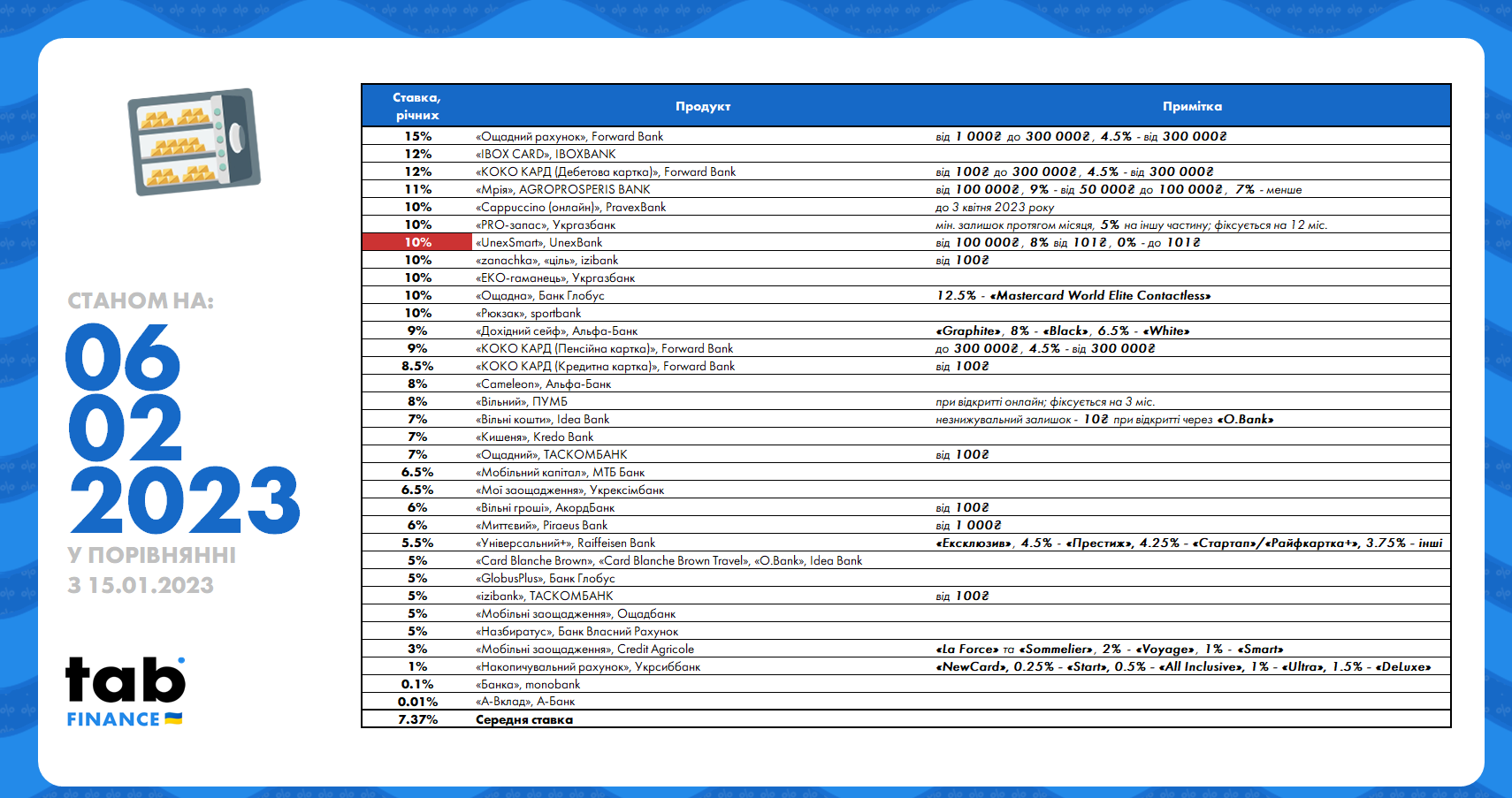 З актуальним рейтингом депозитних властивостей карток і вільних депозитів можна ознайомитися на зображені нижче, а також за посиланням у форматі pdf ↗️.
