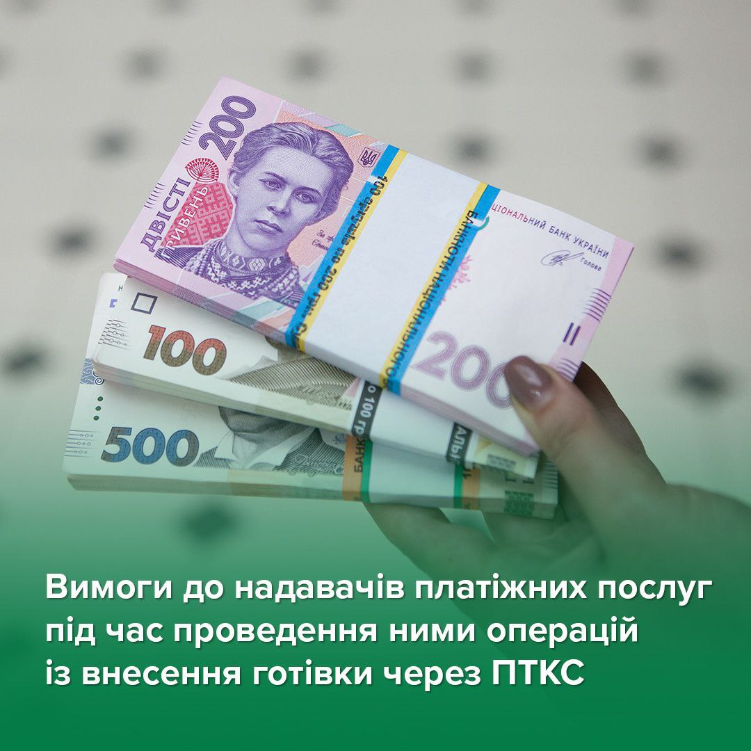 «З 1 серпня 2023 року додаються реквізити до квитанцій, які формуються під час здійснення готівкових операцій з використанням платіжних пристроїв, зокрема через ПТКС. Так, квитанції за результатами операцій із внесення готівки за допомогою ПТКС для її зарахування на рахунки додатково повинні містити номер мобільного телефону платника».