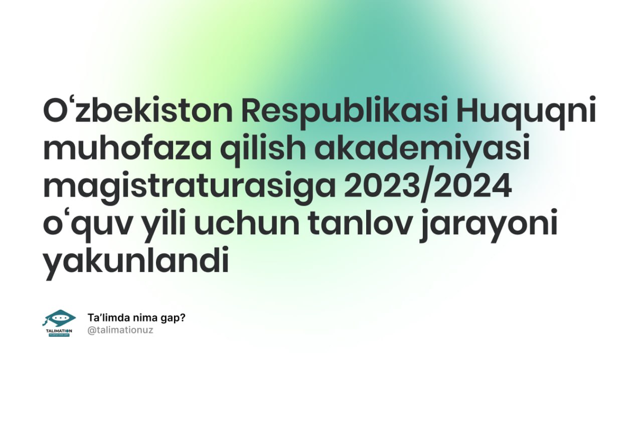 O‘zbekiston Respublikasi Huquqni muhofaza qilish akademiyasi magistraturasiga tanlov jarayoni nihoyasiga yetdi.