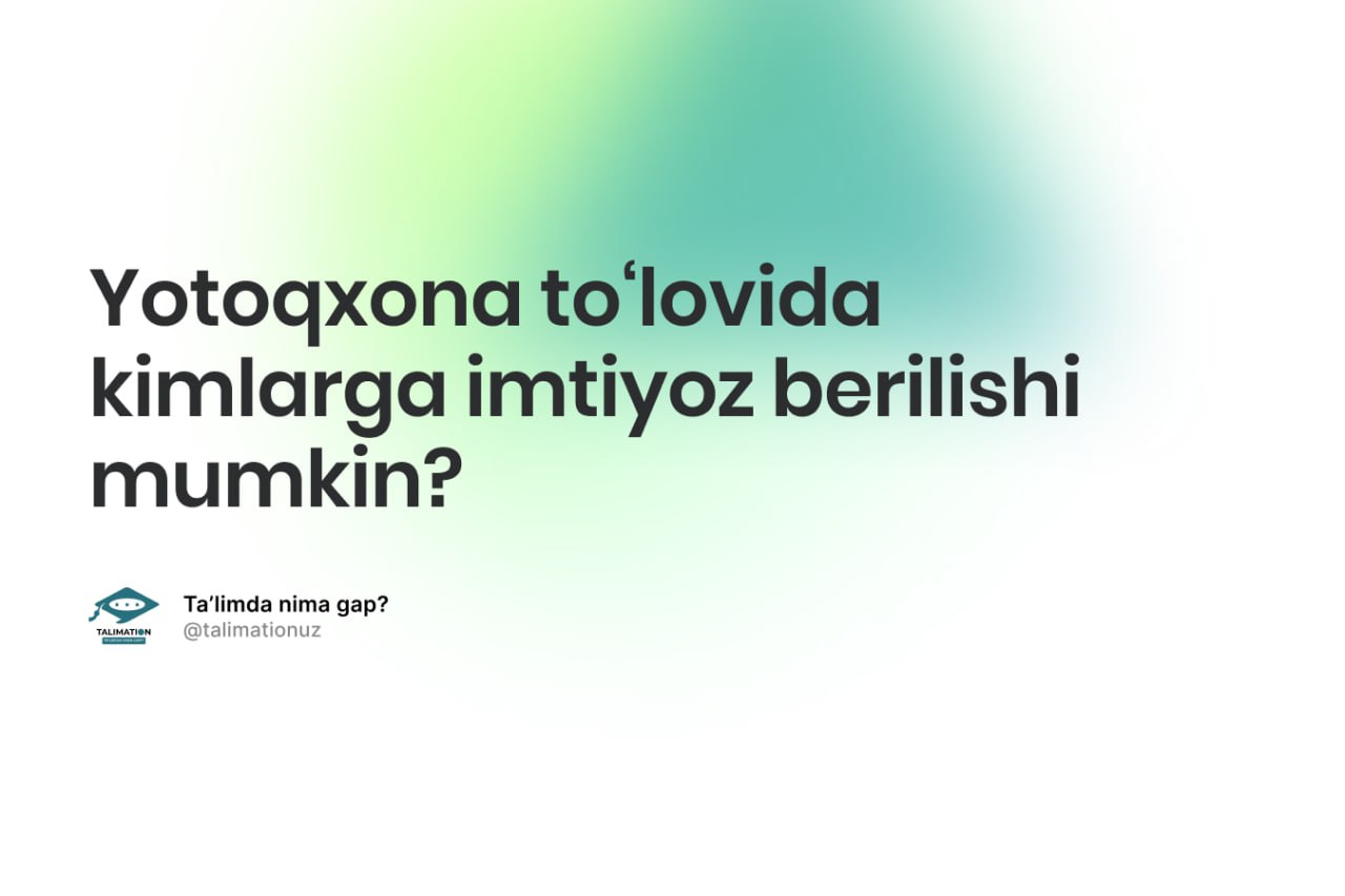 Oliy ta’lim, fan va innovasiyalar vazirligi ma’lumotlariga ko‘ra, talabalikka tavsiya etilganlar davlat OTMlarining talabalar turar joyiga joylashishi uchun Davlat xizmatlari markazi yoki Yagona interaktiv davlat xizmatlari portali — my.gov.uz orqali elektron ariza yuborishlari mumkin. Bunda birinchi bosqich talabalaridan sentyabr va oktyabr oylari uchun ijara shartnomasi talab etilmaydi.