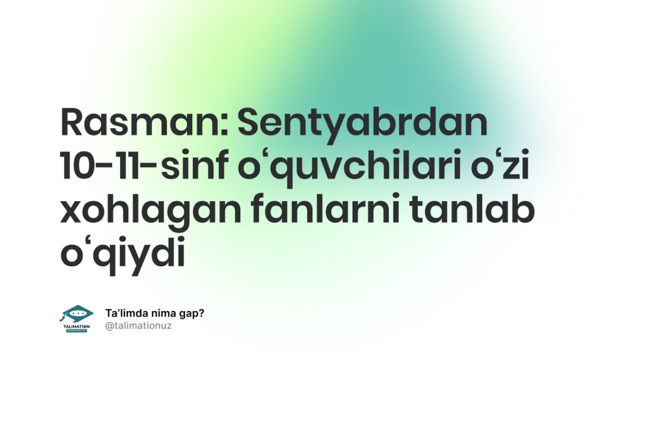 Yuqori sinfda o‘qitiladigan fanlar 16 tadan 11 taga qisqarishi e’lon qilindi.