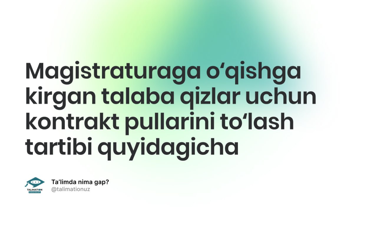 Bu yil magistraturaga kontraktga kirgan talaba xotin-qizlar — 2,1 ming. Ularning hammasiga kontrakt to'lab beriladi.