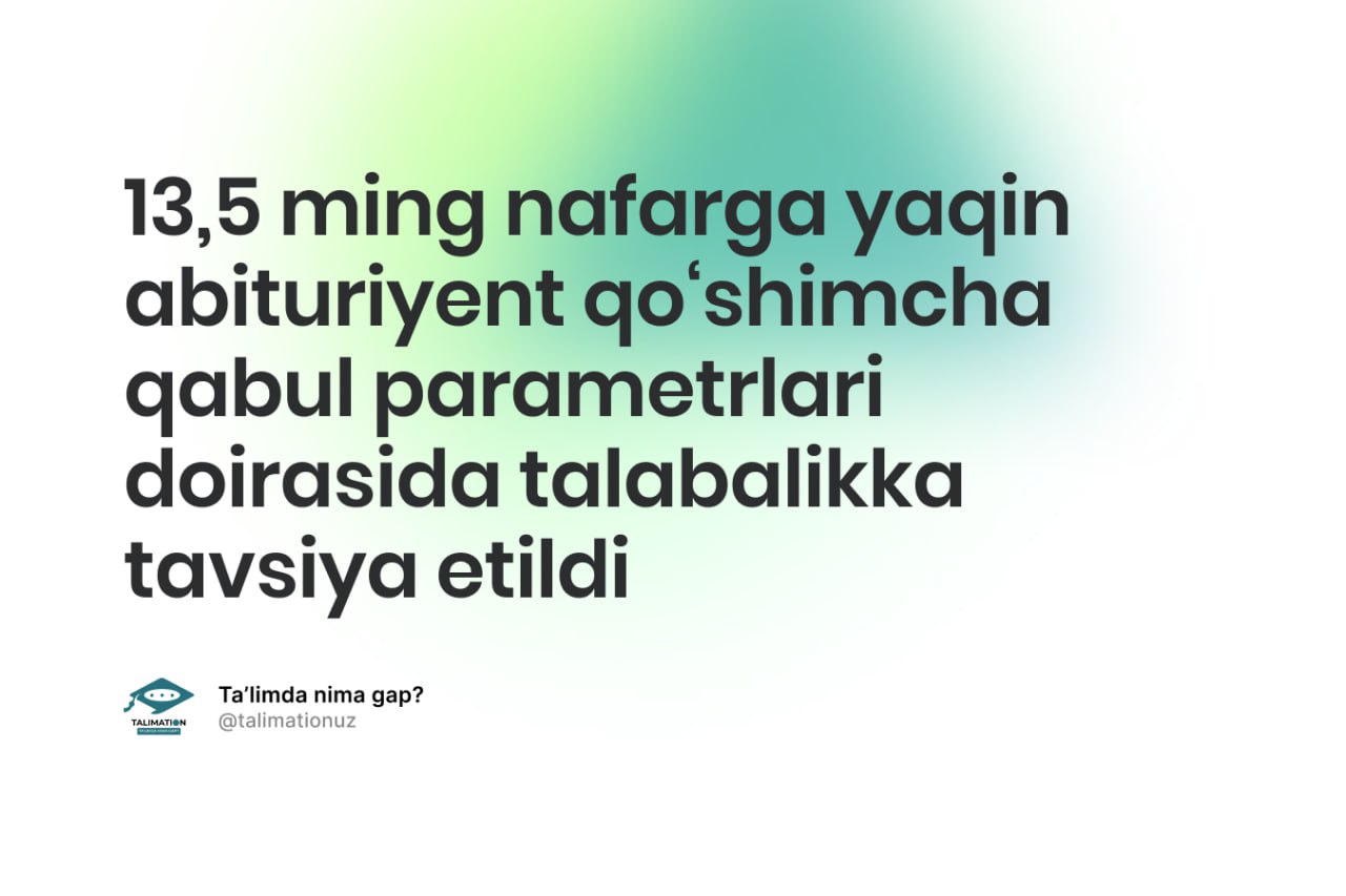 Talabalikka tavsiya etilgan abituriyentlarning: