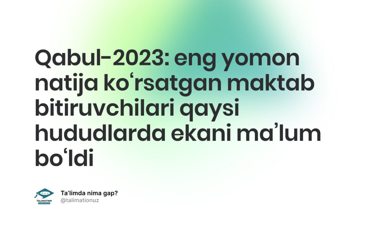 Mandat saytidagi ochiq ma’lumotlarga ko‘ra, joriy yilda jami abituriyentlarning salkam yarmi (49,4 foiz) o‘tish balining eng quyi chegarasi bo‘lgan 56,7 balni ham to‘play olmagani aytilgandi. Ma’lum bo‘ldiki, 56,7 balldan kam to‘plagan abituriyentlarning 70,5 foizi avvalgi yillarda o‘qishni tugatganlar, 29,5 foizi joriy yilgi bitiruvchilar bo‘lgan.