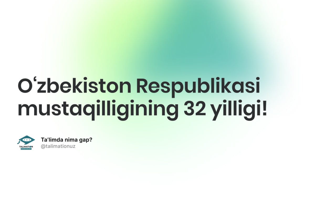 Shu kunlarda Vatanimiz va xalqimiz uchun qadrli, ulug‘ sana – mustaqilligimizning 32 yillik ayyomi nishonlanmoqda!