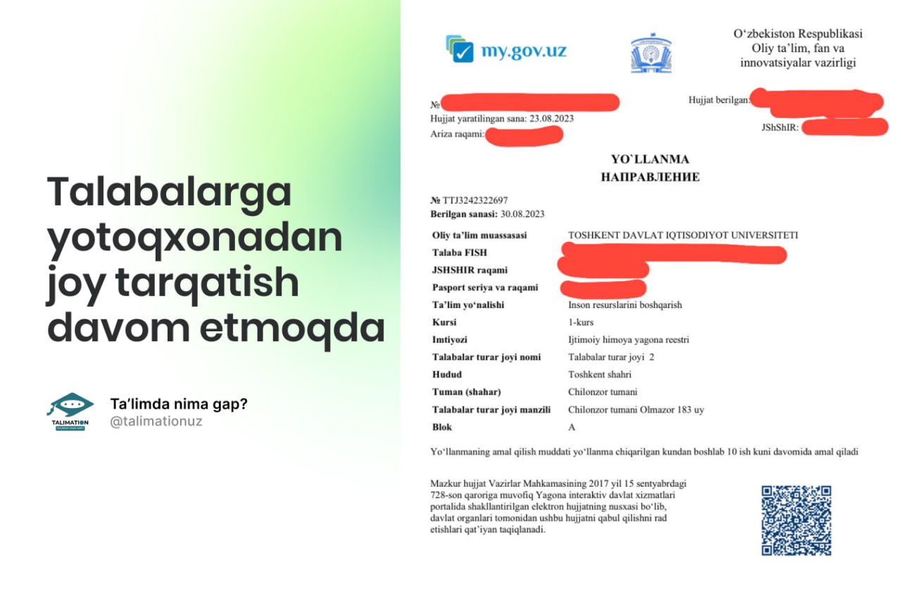 👉 Talabalarga- pasport va talabalik guvohnoma nusxasi;