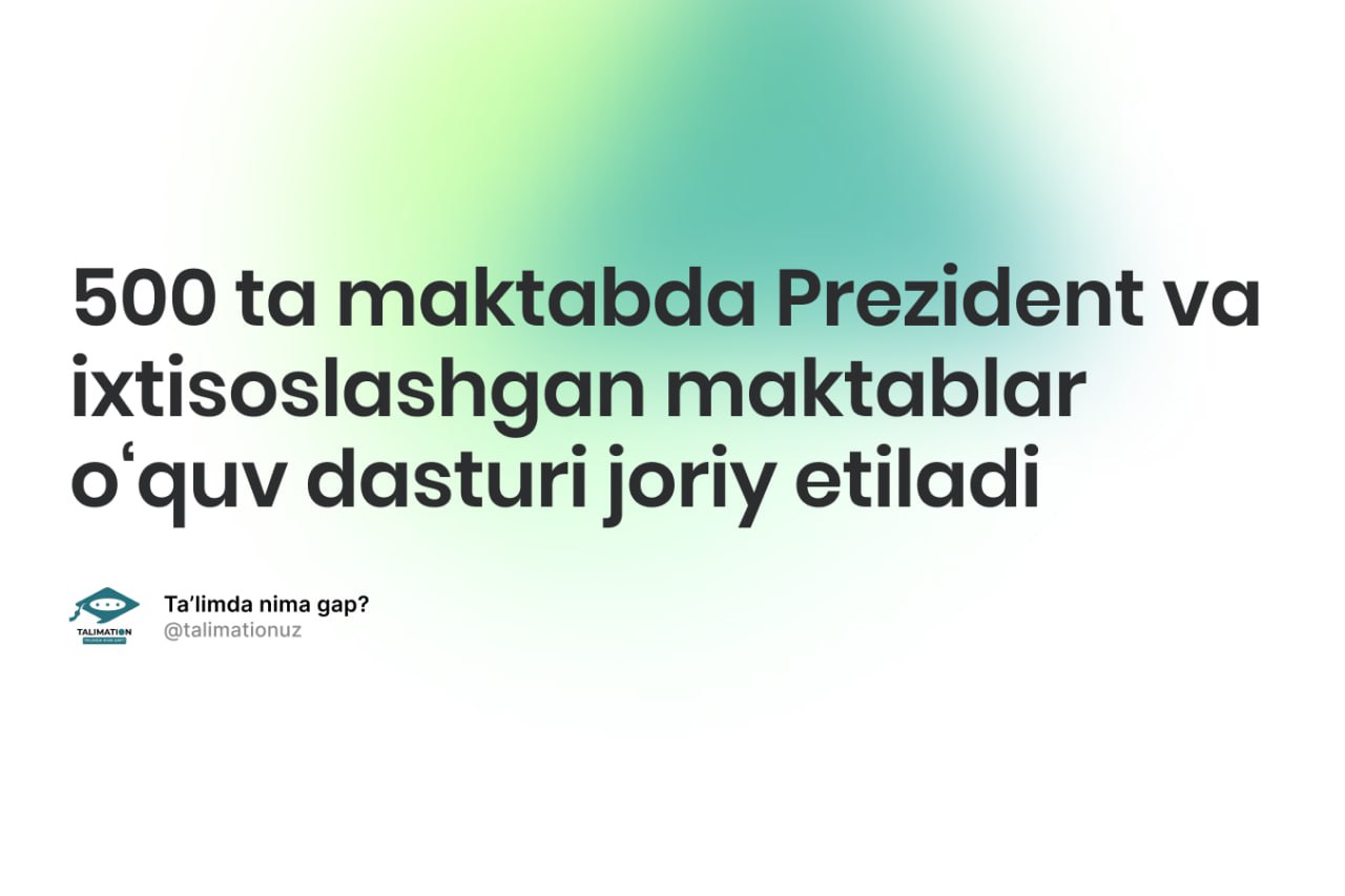 🏫 500 ta maktabda Prezident va ixtisoslashgan maktablar o‘quv dasturi joriy etiladi
