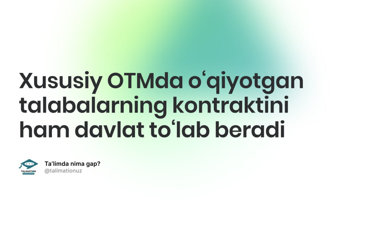 To‘lov shartnoma asosida o‘qiyotganlar uchun ajratiladigan ta’lim krediti faqat davlat OTMlari talabalariga emas, balki xususiy OTMlar talabalariga ham ajratiladi.