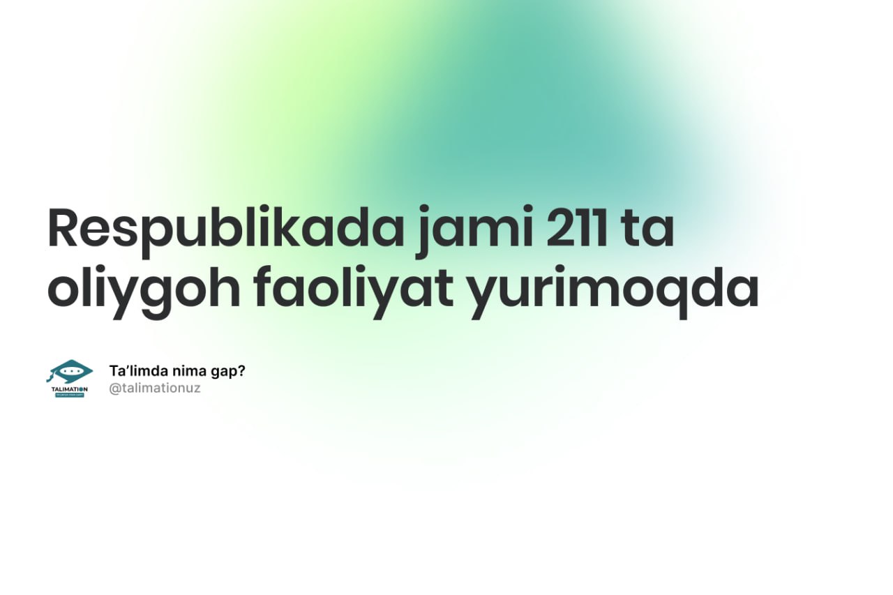 Respublikada jami 211 ta oliygoh faoliyat yurimoqda va ularda taxminan 1 mln 200 ming nafar talaba tahsil olishi ko‘zda tutilgan.