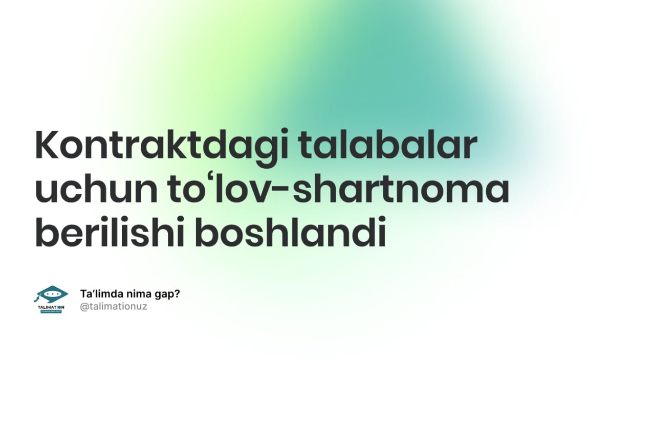 Bugundan boshlab kontrakt.edu.uz platformasi orqali 1-kursga talabalikka tavsiya qilinganlarga hamda 2 va undan yuqori kursda kontraktda o‘qiyotgan talabalarga to‘lov-shartnoma berish boshlandi.